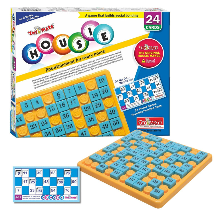 Make every gathering more exciting with Toymate’s 24-Card Housie Game – a compact, colorful, and fun-filled version of the timeless tambola game that brings family and friends together. Designed for quick setup and endless replay, this set includes 24 easy-to-read cards and a plastic number board for a clean, no-mess experience.